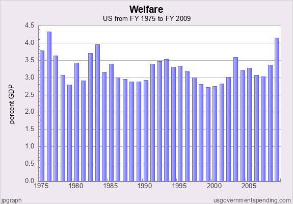 As a percentage of GDP, total welfare spending in the US (including unemployment benefits)